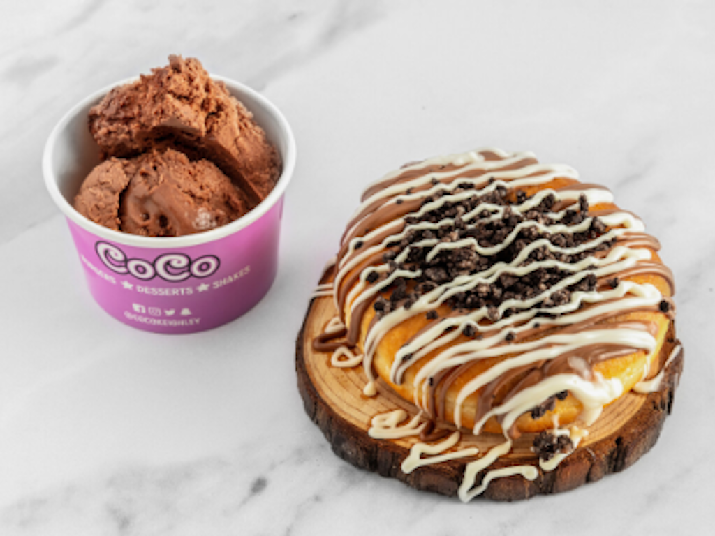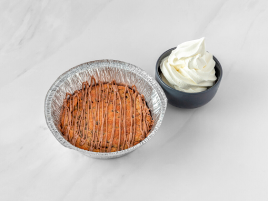 Warm and gooey chocolate chip cookie dough drizzled with belgian milk chocolate sauce. Served with a scoop of whippy ice cream.