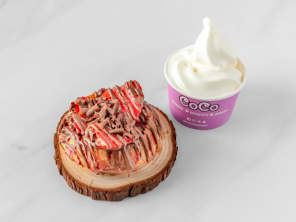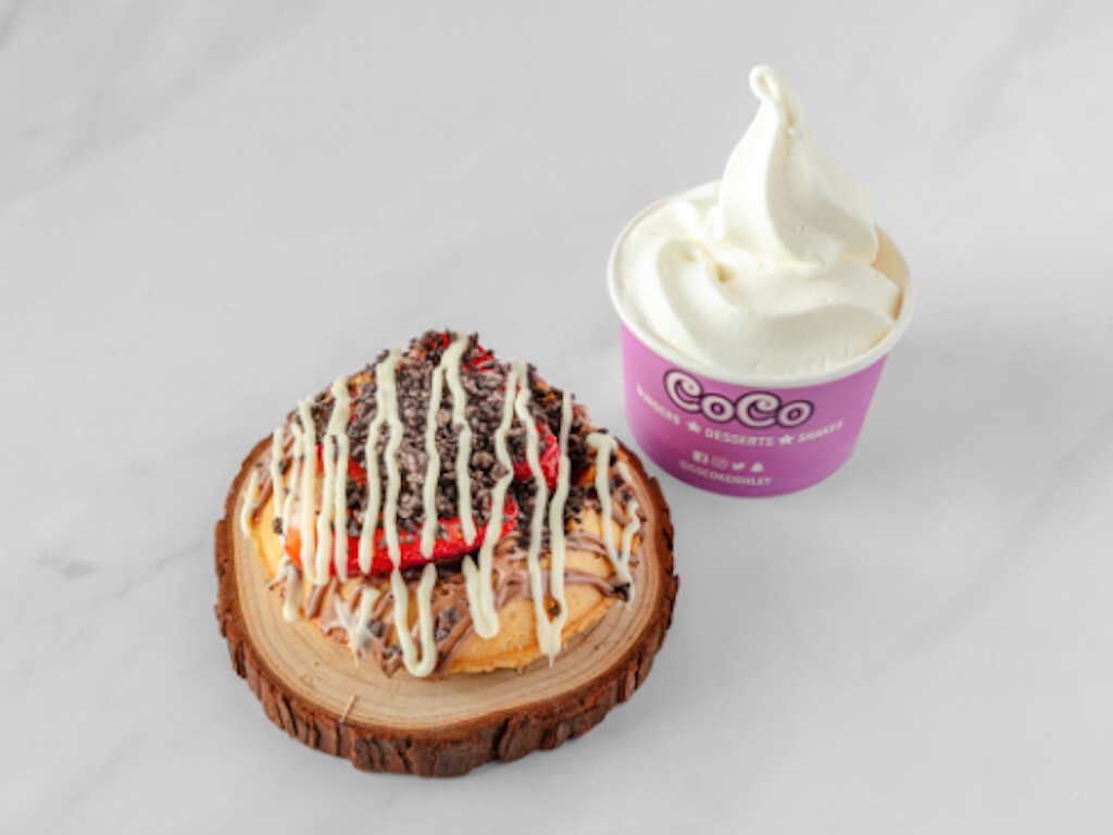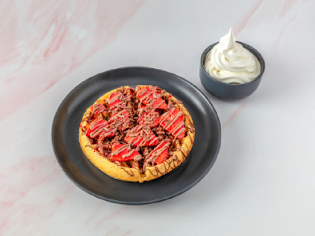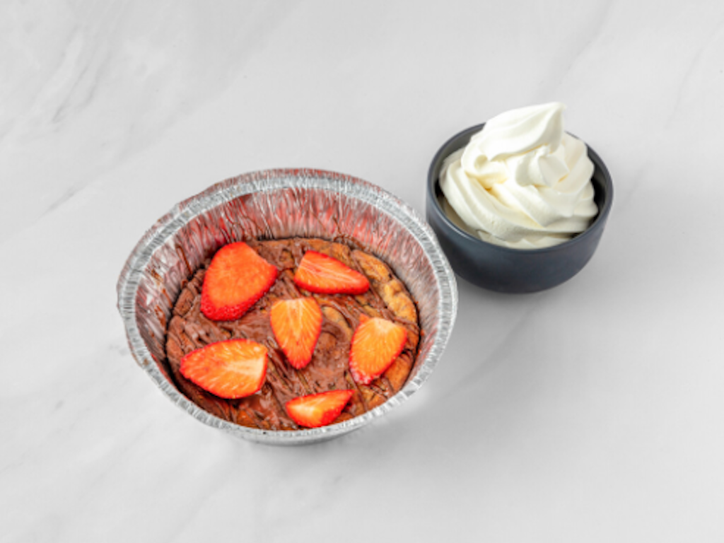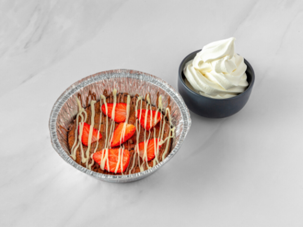 Warm and gooey chocolate chip cookie dough drizzled with nutella, topped with fresh strawberries. Served with a scoop of whippy ice cream.