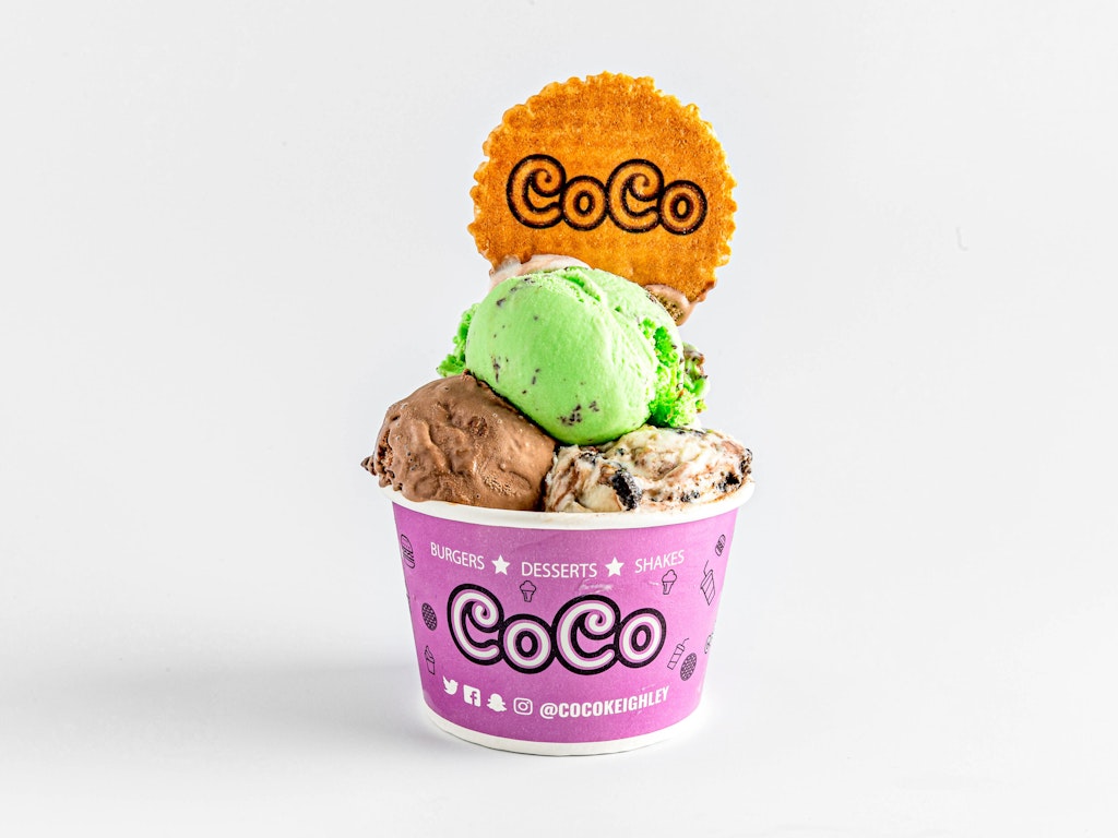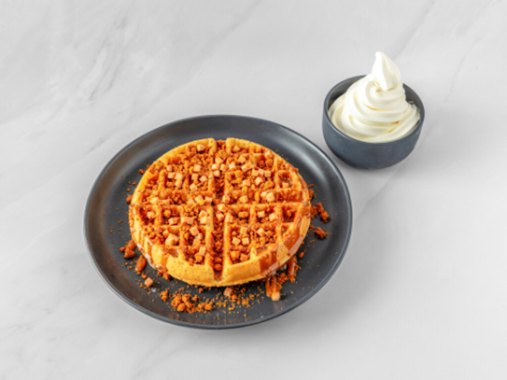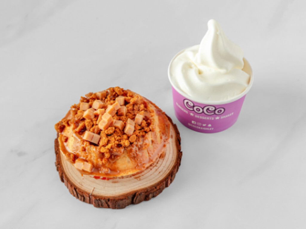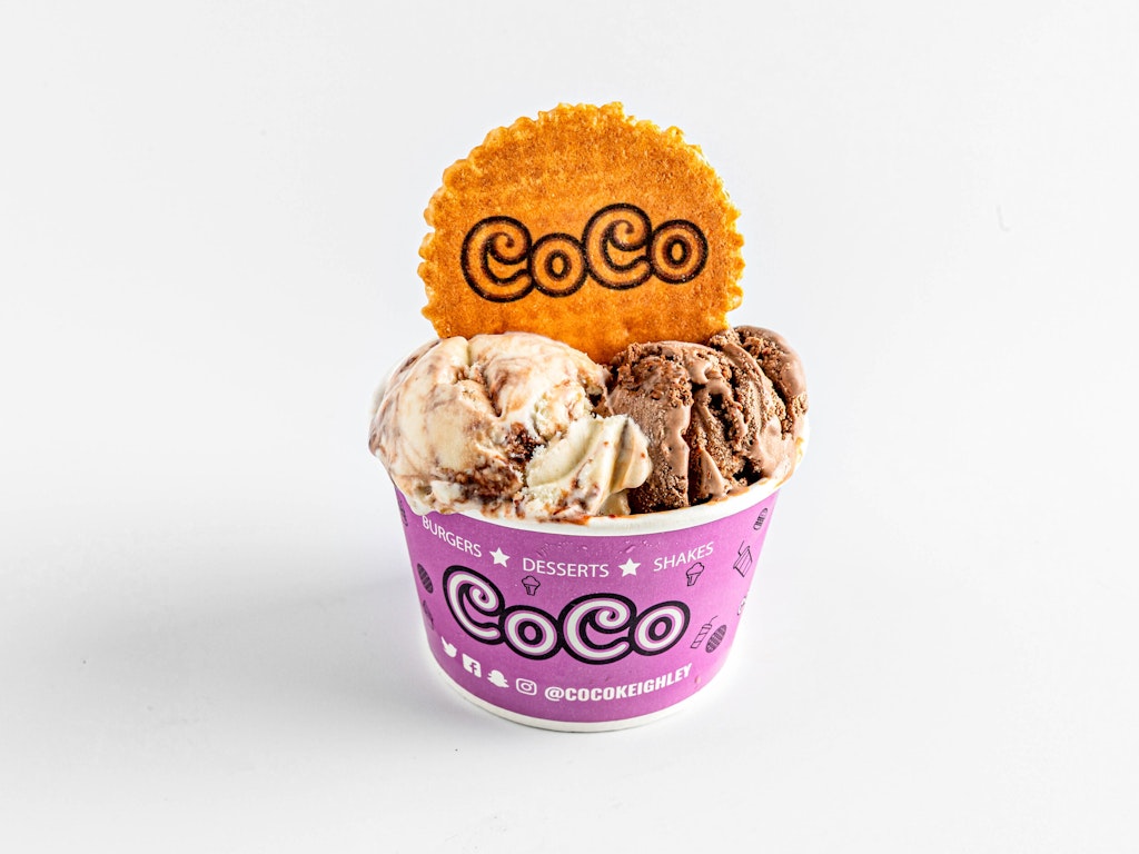 Biscoff gelato topped with biscoff crumbs followed by a layer of whippy ice cream. Finished with biscoff sauce and even more biscoff crumbs.