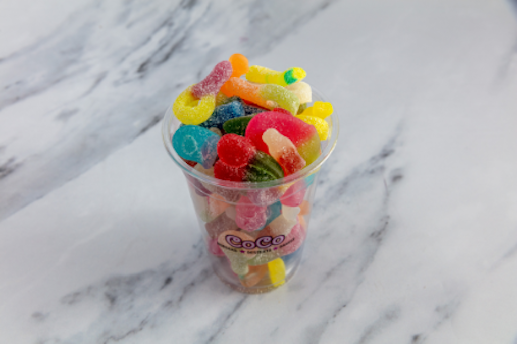 Chocolate gelato topped with smarties followed by a layer of whippy ice cream. Finished with belgian milk chocolate sauce and even more smarties.