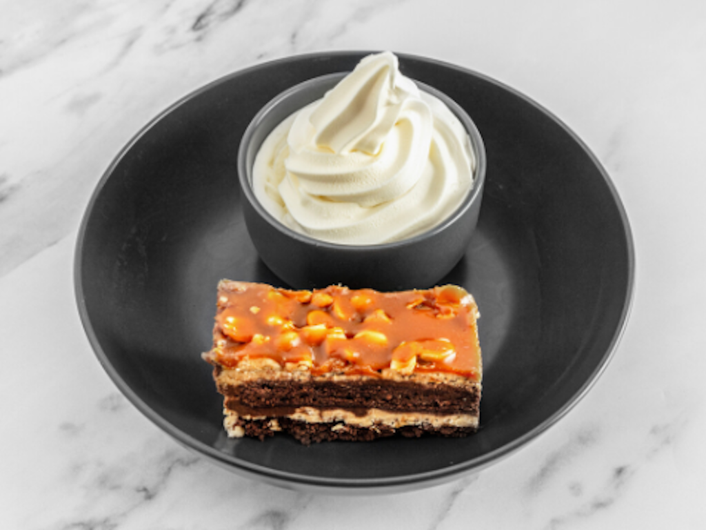 Chocolate gelato topped with snickers followed by a layer of whippy ice cream. Finished with belgian milk chocolate sauce and even more snickers.