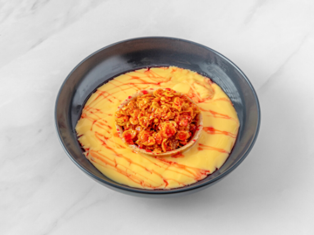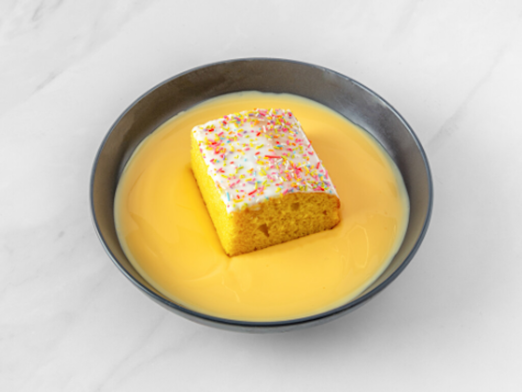 Soft and delicate milk cake soaked in sweet, creamy milk. Topped with belgian white chocolate sauce and milky bar.