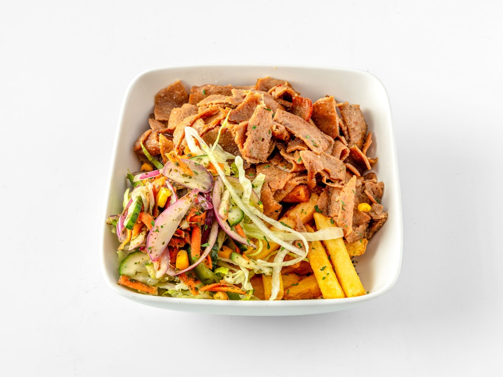 Tender, seasoned donner meat, served with crispy golden fries or curly fries.