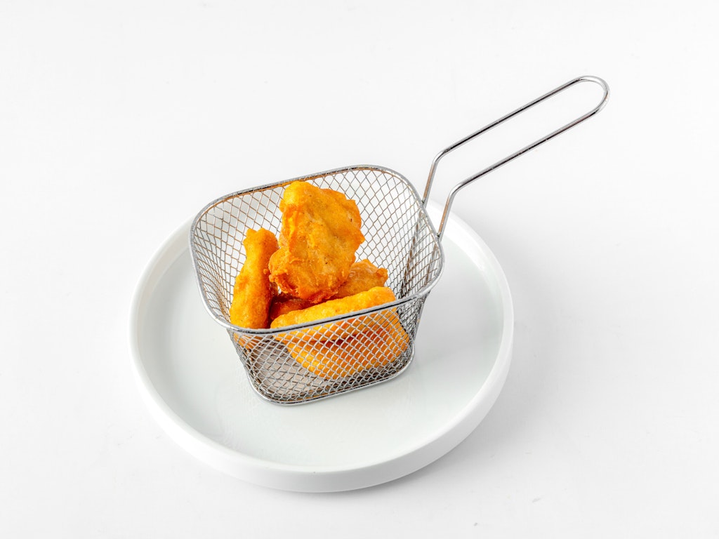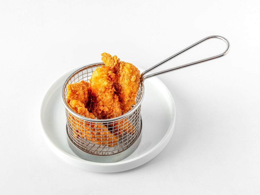 Crispy golden chicken strips, fresh lettuce, onions, cheese and house mayo all in a soft toasted bun. Served with fries or curly fries and a refreshing drink.