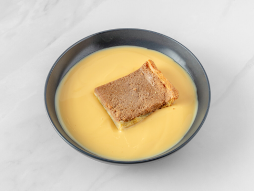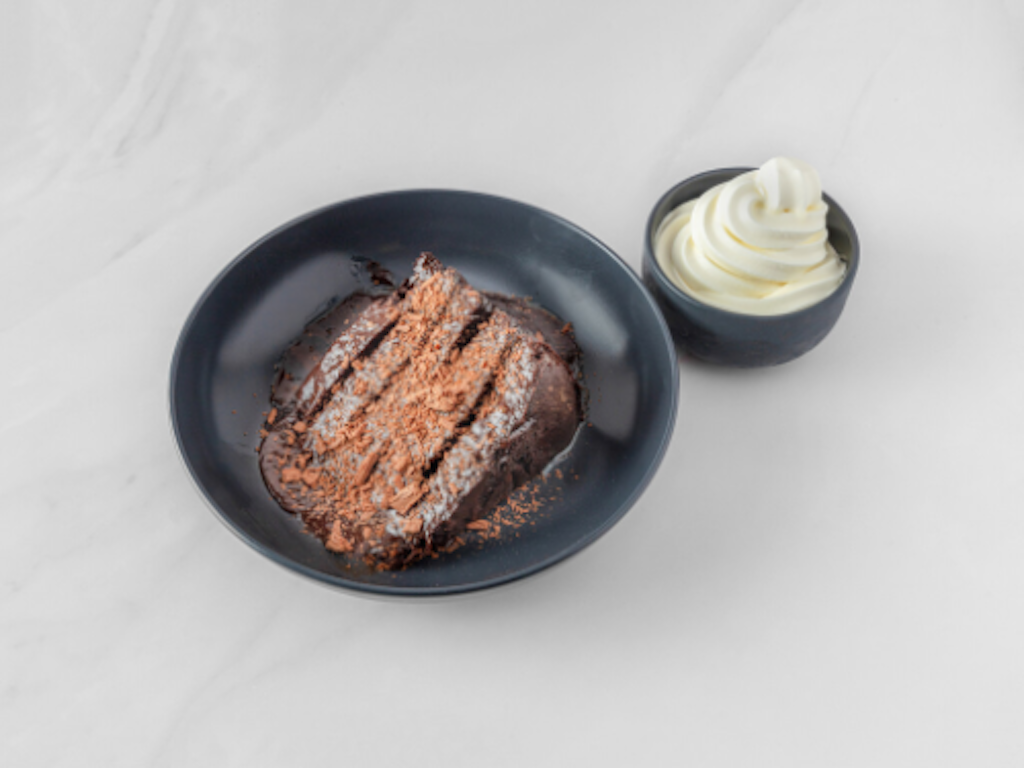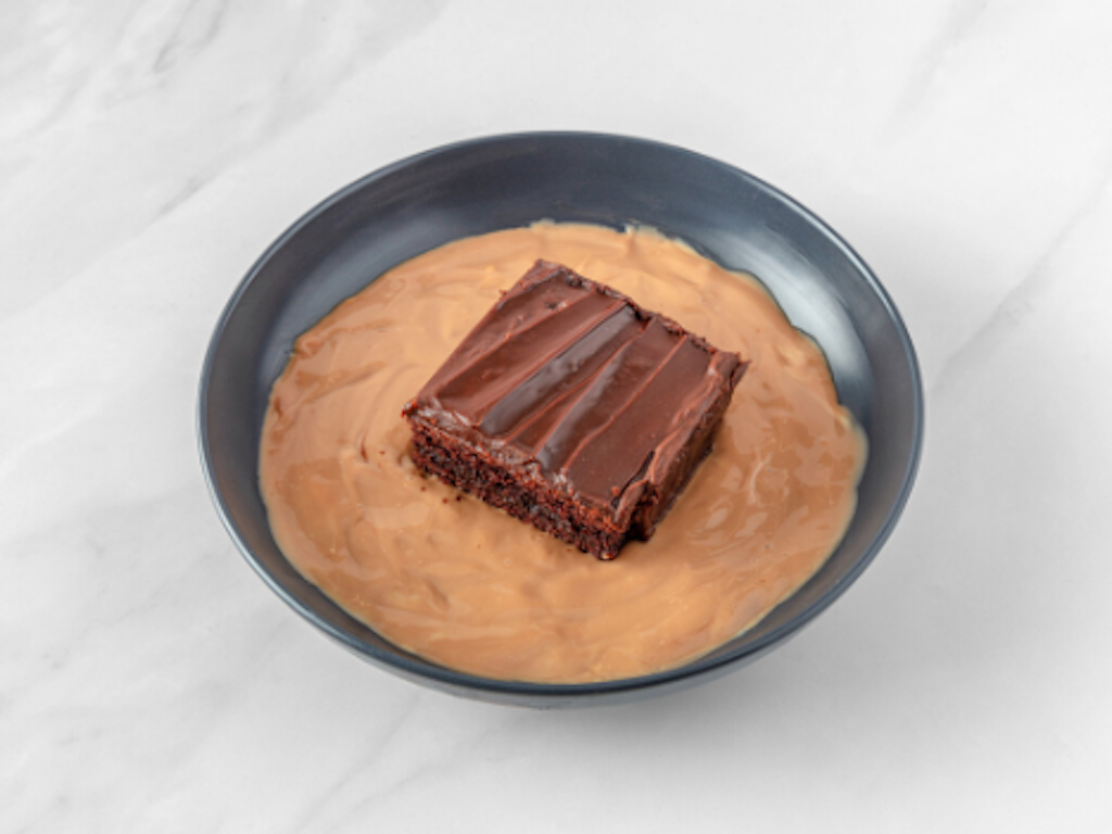 Soft and delicate milk cake soaked in sweet, creamy milk. Topped with belgian milk chocolate sauce and flake.