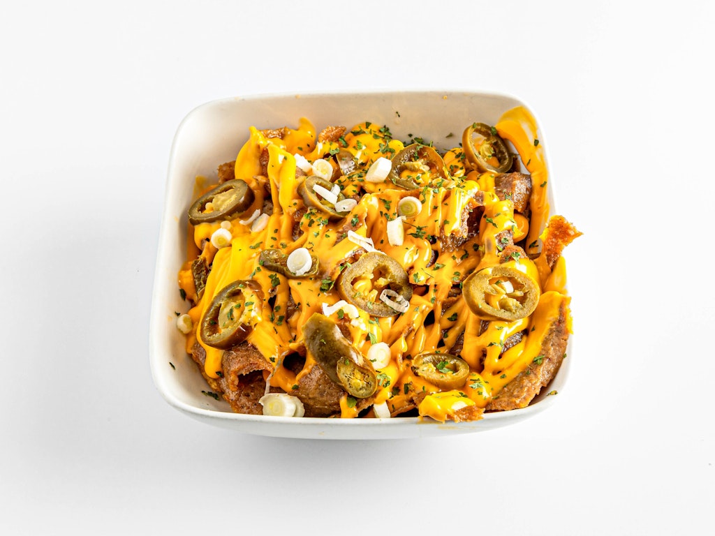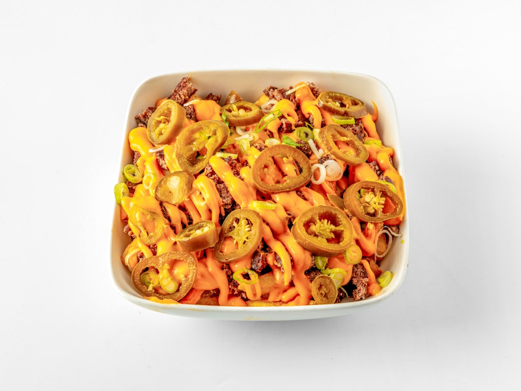Fries loaded with tender angus beef, topped with cheese sauce, jalapeños, and fresh spring onions.