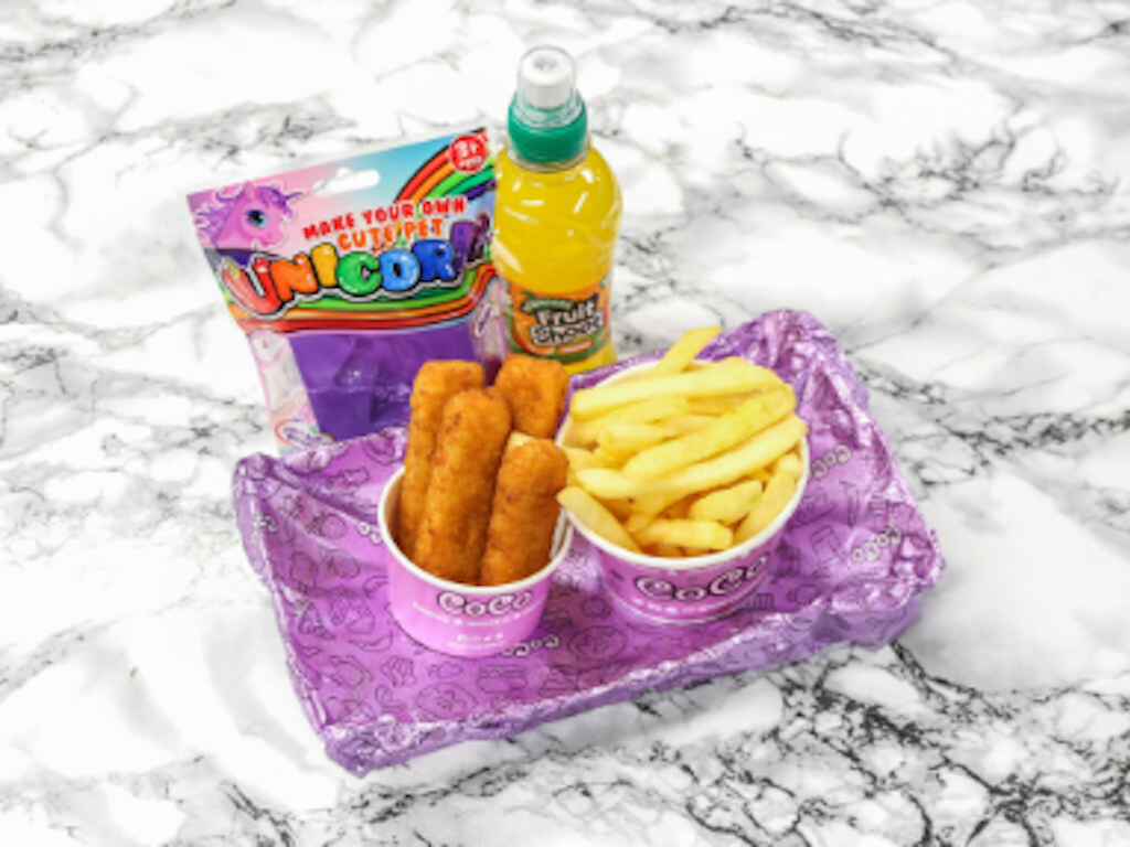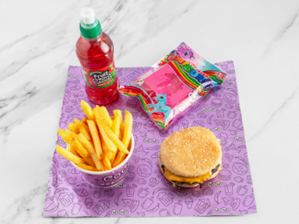 Two juicy lamb patties, melted cheese, fresh lettuce, gherkins, caramelized onions, and burger sauce, all in a toasted bun. Served with fries or curly fries and a refreshing drink.