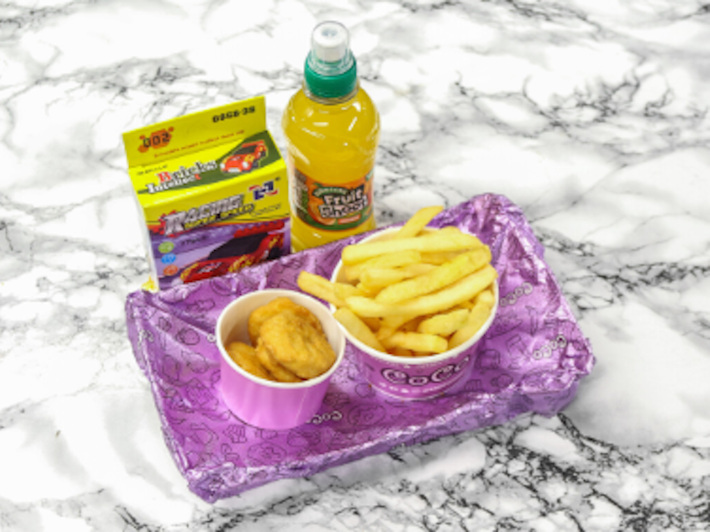 Our chicken box meal features a grilled chicken burger, two crispy chicken strips, donner meat, fries or curly fries, creamy coleslaw, and a refreshing drink. Perfect for satisfying all your cravings in one meal!