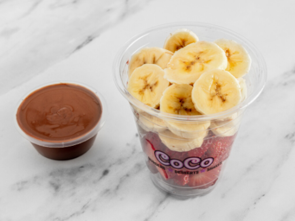 Fresh strawberries, bananas and nutella. Nutella served separate.