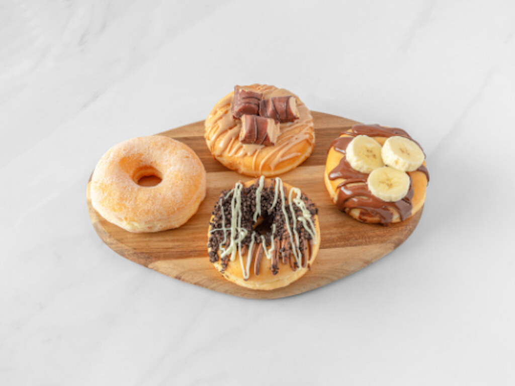 Four juicy beef patties, melted cheese, fresh lettuce, gherkins, caramelized onions, and burger sauce, all in a toasted bun. Served with fries or curly fries and a refreshing drink.