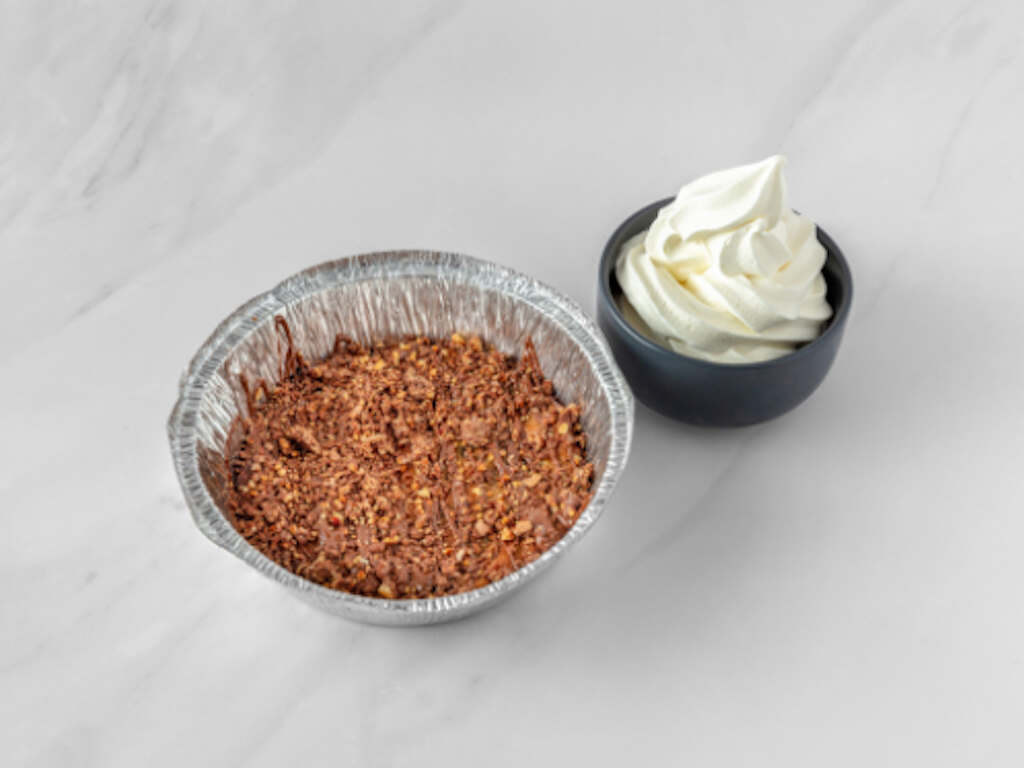 Chocolate gelato topped with brownie pieces followed by a layer of whippy ice cream. Finished with belgian milk chocolate sauce and even more brownie pieces.
