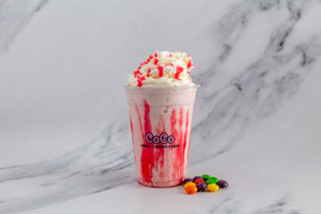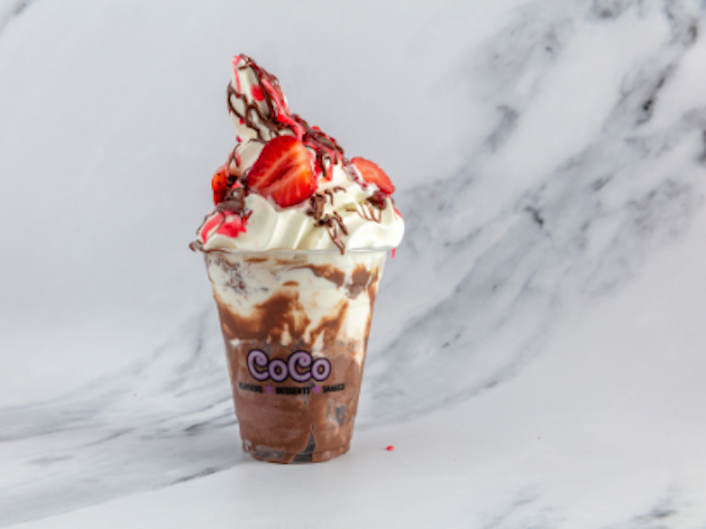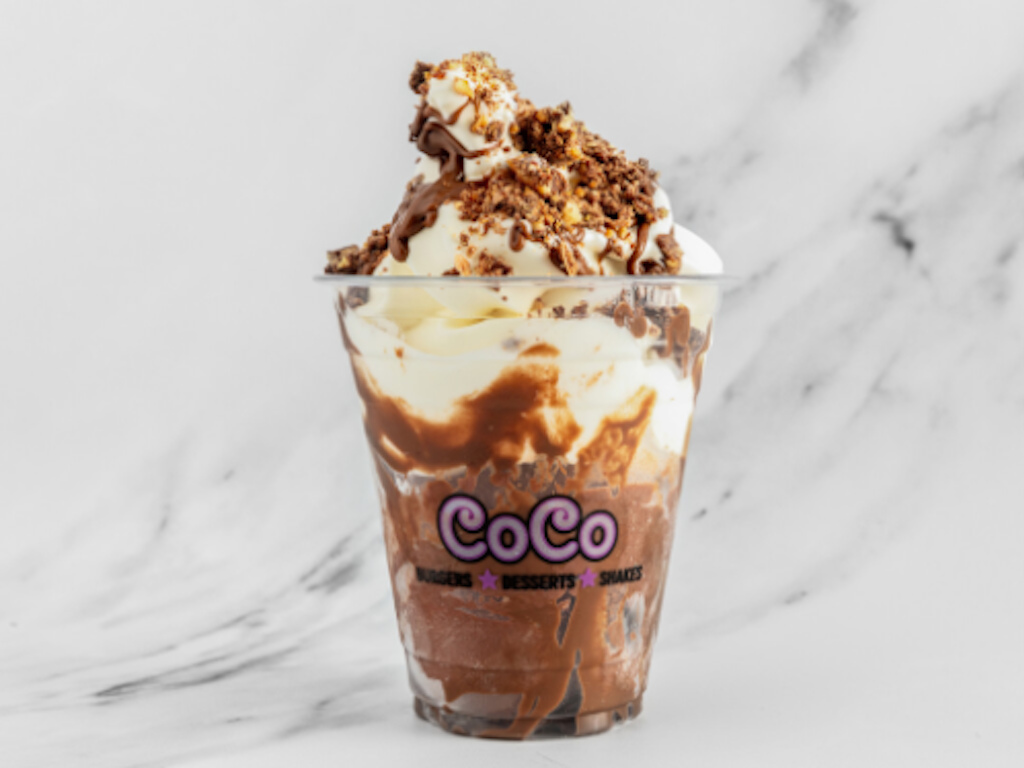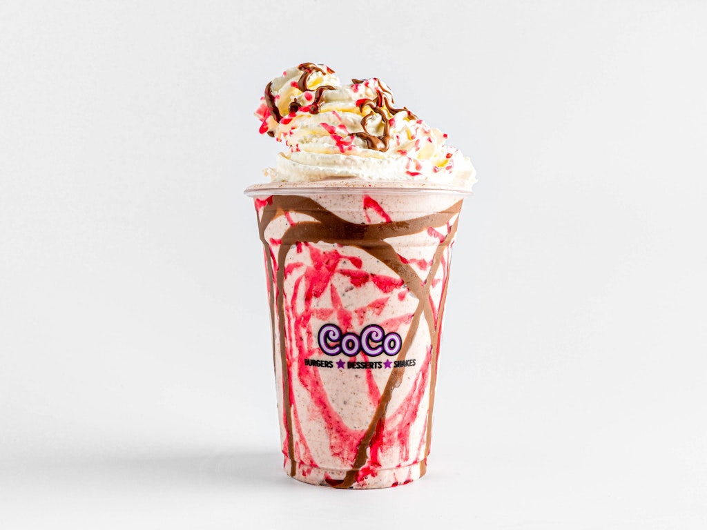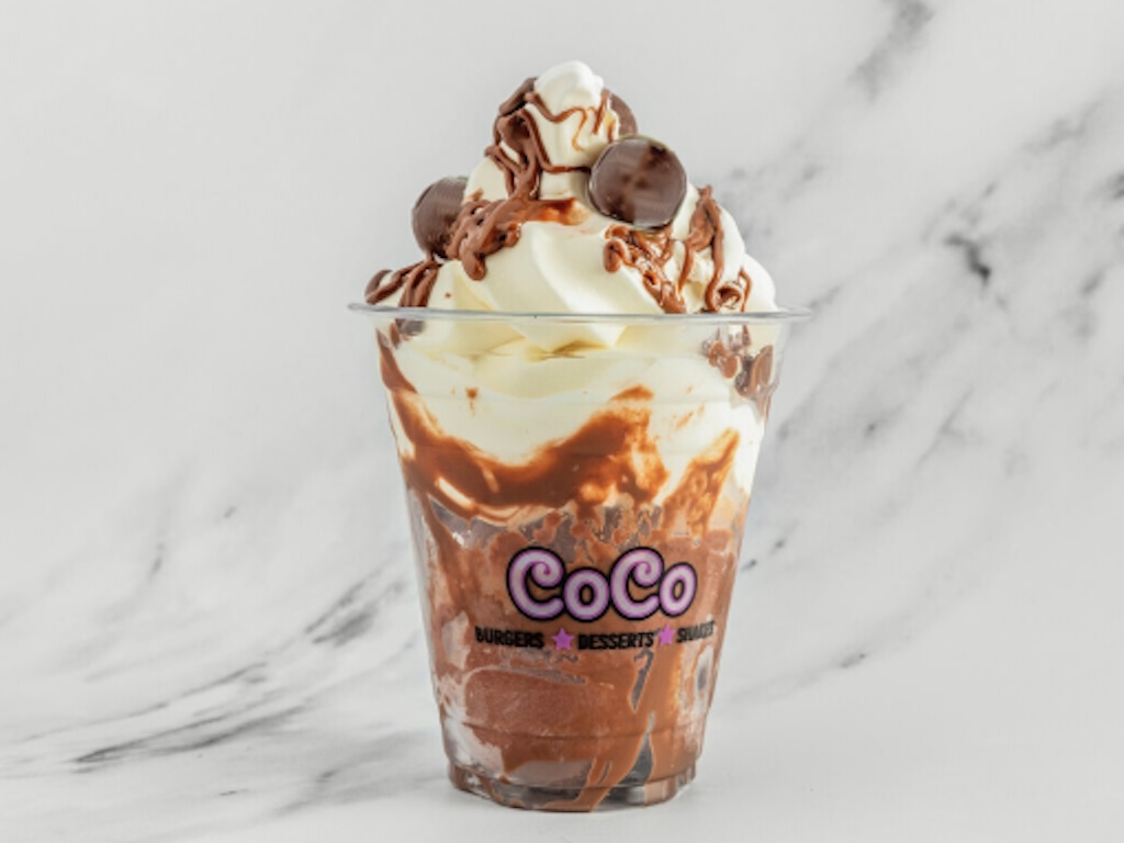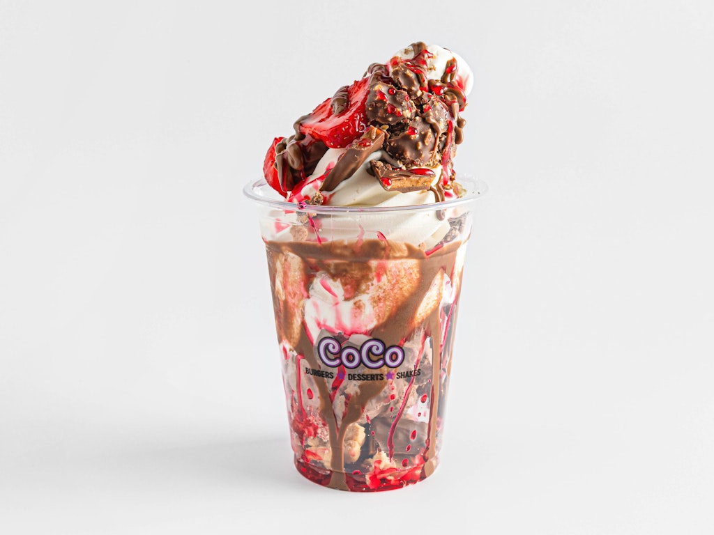 The Coco Special Shake: a delicious blend of daim bar, ferrero rocher, jammie dodger, fresh strawberries, and fresh cream. Creating a rich and indulgent treat.