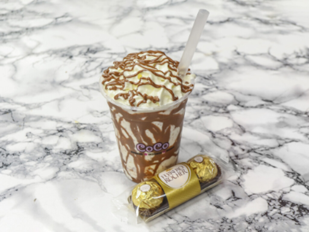 A rich, indulgent milkshake with ferrero rocher, strawberries and fresh cream. Delivering a creamy, chocolate hazelnut bliss in every sip.